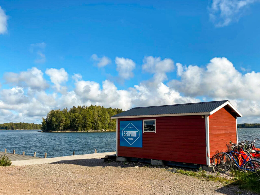 Vid vår mack kan du tanka både bil och båt. Öppet dagligen, juni–augusti: kl. 12.00–18.00 (lördagar kl. 09.00–18.00), med väderförbehåll. Om personal inte är på plats hjälper caféet till, och kortautomaten fungerar dygnet runt. Här kan du också köpa gas, förnödenheter och produkter för stugan – samt hyra cyklar (5€ för en halvdag, 10€ för en heldag).
